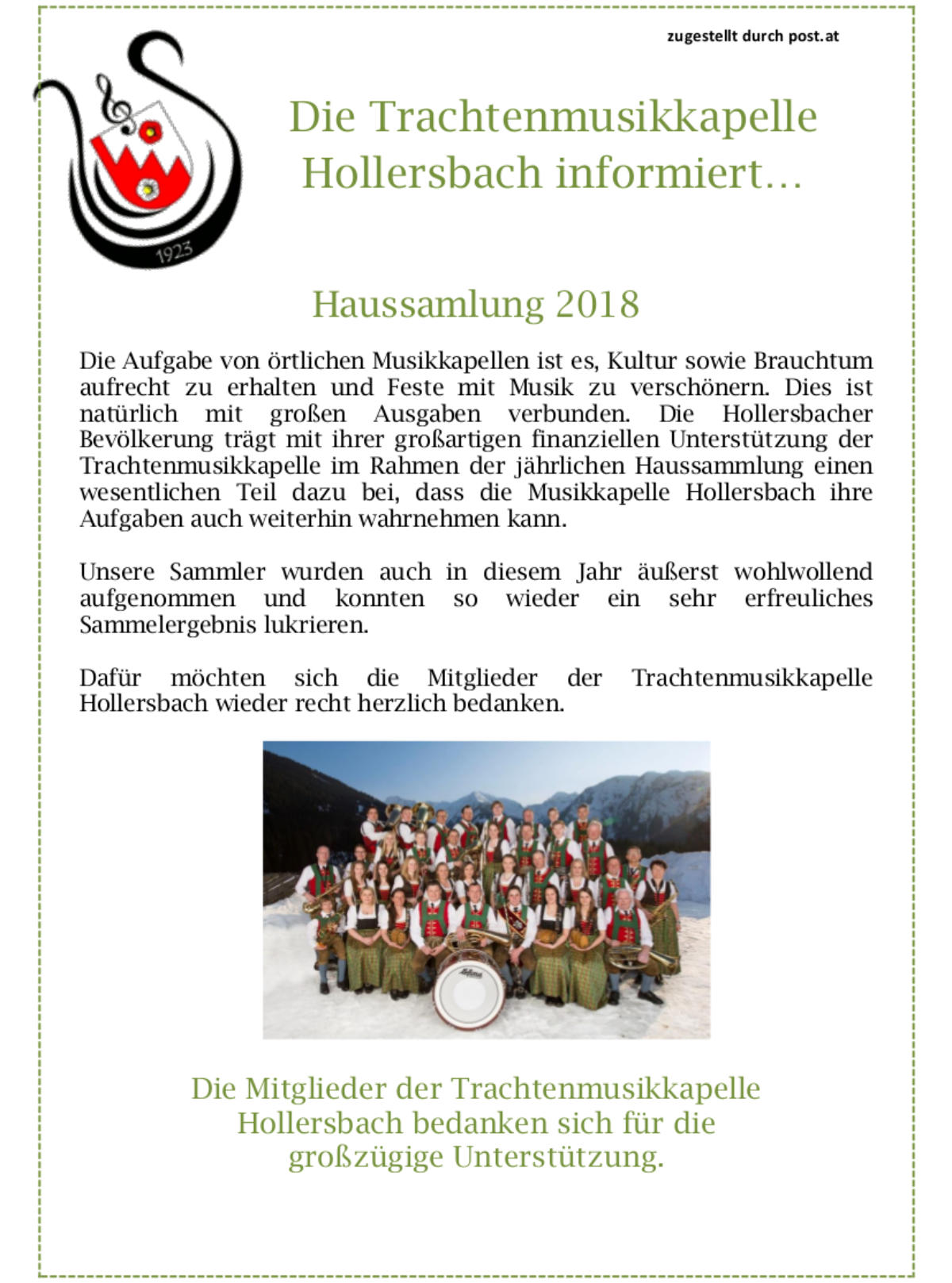Aufnahme der Hollersbacher/Innen recht herzlich bedanken!